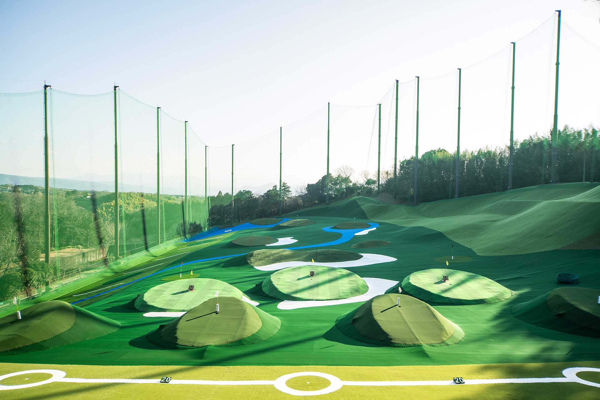 ゴルフコースをイメージした本格的なフェアウェイや厳選したマットやボール、