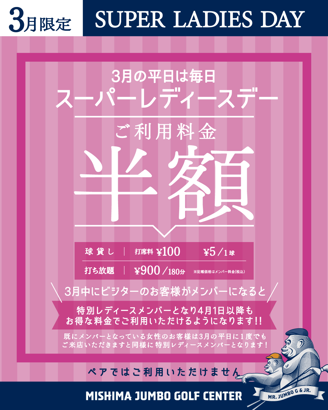 ※既にメンバーのお客様は、3月の平日に一度でもご来店すれば上記メンバーとなれます。