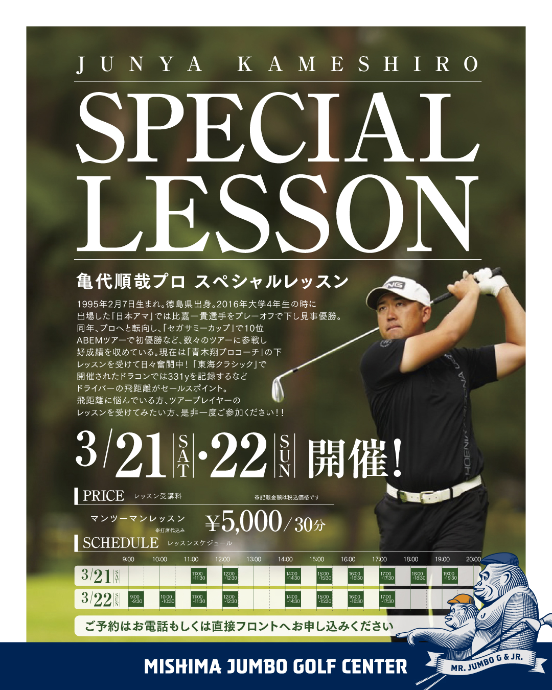 現役ツアープレイヤーの『亀代 順哉』プロが三島ジャンボに登場!!