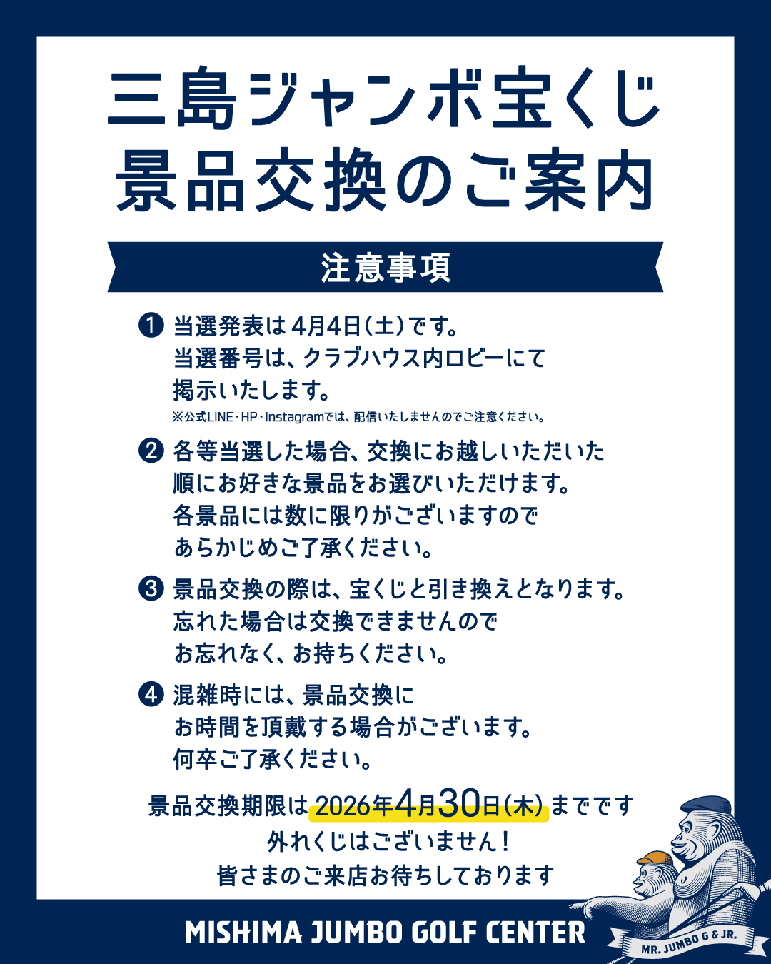 いつも三島ジャンボゴルフセンターをご利用いただき誠にありがとうございます。